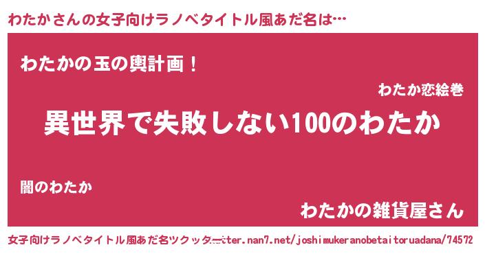 | 男性向けラノベタイトル風あだ名 | 『わたかという概念が存在しない退屈な世界 』 |