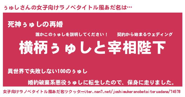 | 男性向けラノベタイトル風あだ名 | 『ぅゅしに滅ぼされるだけの簡単なお仕事です』 |