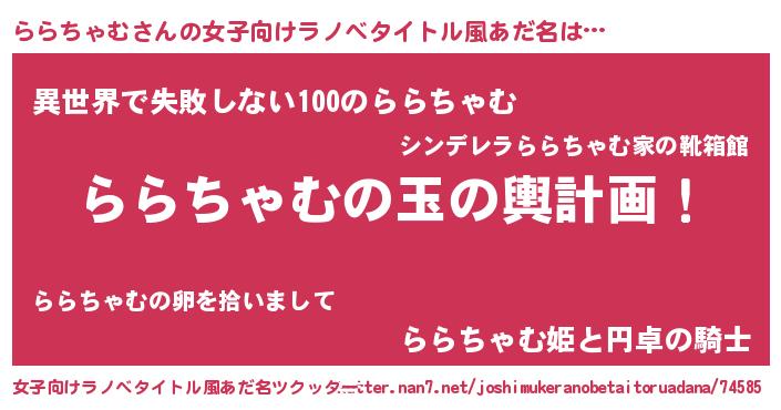 | 伝説のあだ名 | 『古文書に記された吟遊詩人ららちゃむ』 |