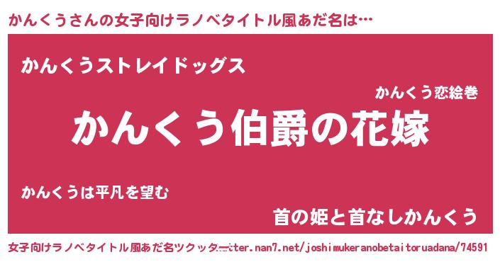 | 男性向けラノベタイトル風あだ名 | 『やはりかんくうの青春ラブコメはまちがっている 』 |