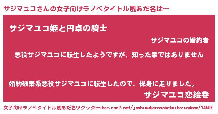 | 男性向けラノベタイトル風あだ名 | 『この素晴らしい世界にサジマユコを!』 |