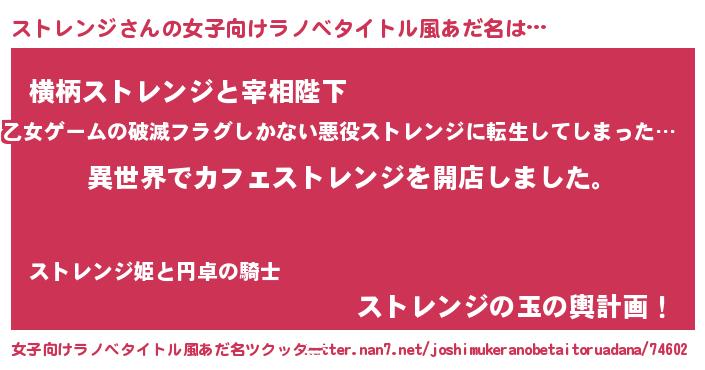 | 男性向けラノベタイトル風あだ名 | 『誰もが恐れるあのストレンジが、ぼくの専属メイドになるようです。』 |