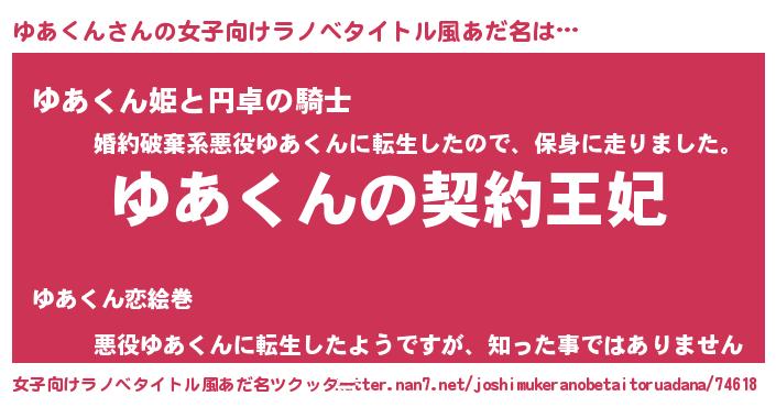 | 男性向けラノベタイトル風あだ名 | 『誰もが恐れるあのゆあくんが、ぼくの専属メイドになるようです。』 |