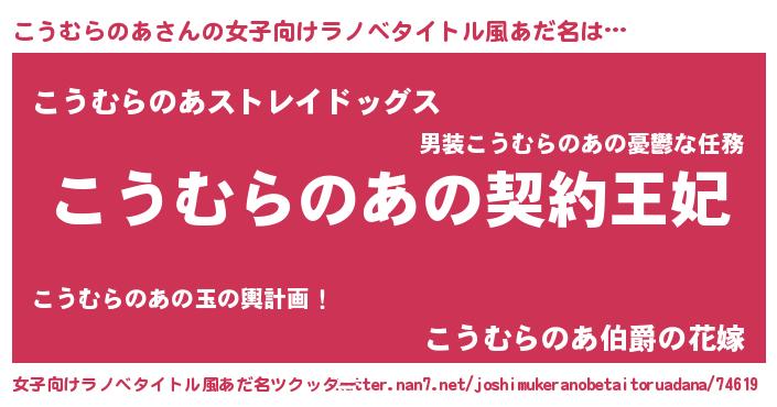 | 男性向けラノベタイトル風あだ名 | 『こうむらのあという概念が存在しない退屈な世界 』 |