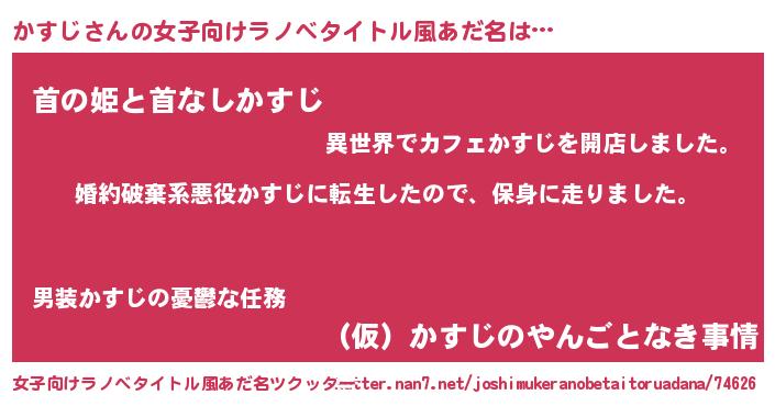 | 胡散臭い通販商品みたいなあだ名 | 『モテモテ間違いなし霊験あらたかなお札…その名も「かすじ」』 |