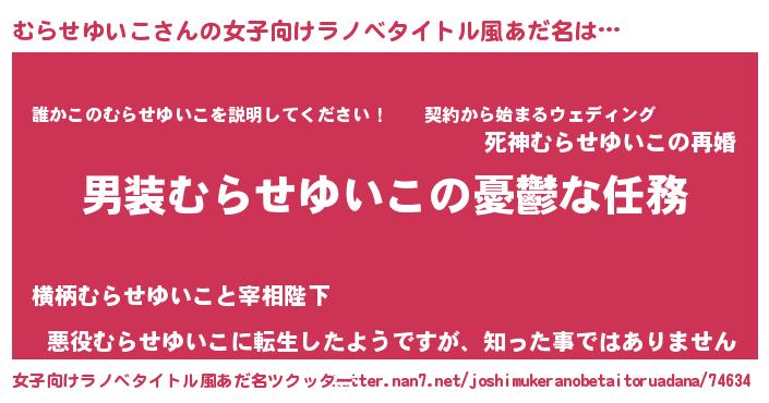 | 胡散臭い通販商品みたいなあだ名 | 『億万長者になれる霊験あらたかなお札…その名も「むらせゆいこ」』 |