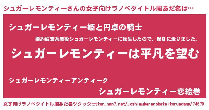 | 胡散臭い通販商品みたいなあだ名 | 『信頼と実績のネックレス…その名も「シュガーレモンティー」』 |