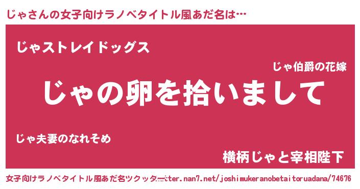 | 男性向けラノベタイトル風あだ名 | 『ダンジョンにじゃを求めるのは間違っているだろうか』 |