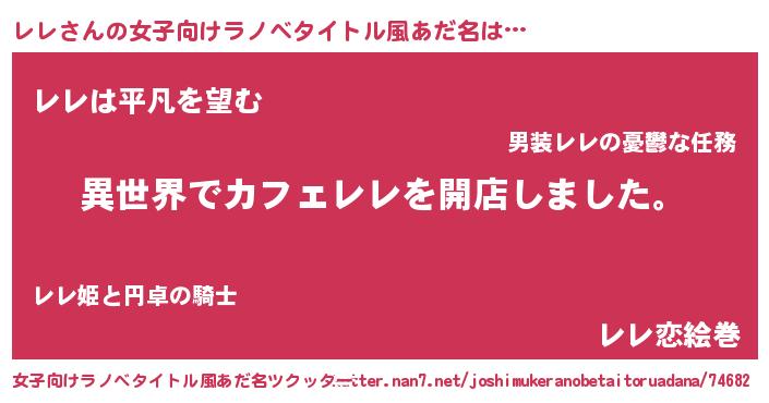 | 男性向けラノベタイトル風あだ名 | 『誰もが恐れるあのレレが、ぼくの専属メイドになるようです。』 |