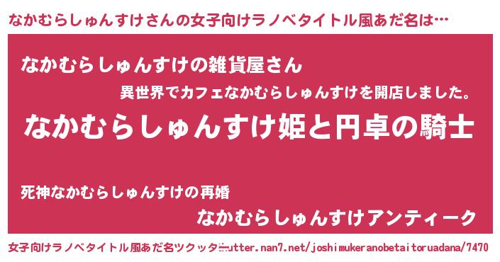 | 男性向けラノベタイトル風あだ名 | 『ナカムラシュンスケアートオンライン』 |