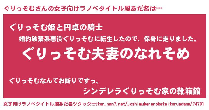 | 男性向けラノベタイトル風あだ名 | 『おまえをオタクにしてやるから、俺をぐりっそむにしてくれ! 』 |