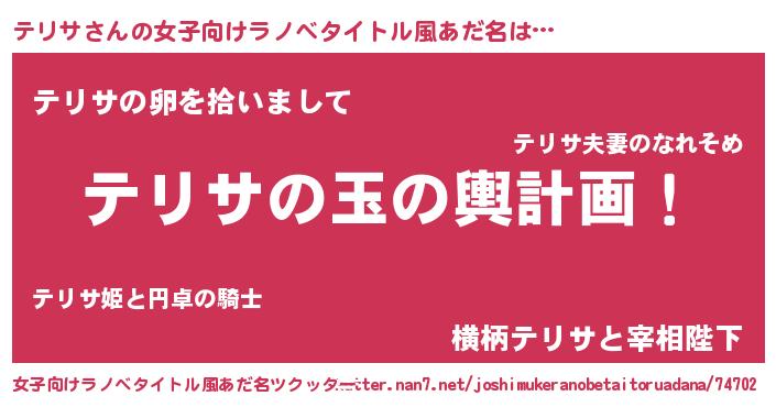 | 男性向けラノベタイトル風あだ名 | 『転生したらテリサだった件』 |