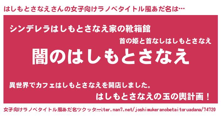 | 意味不明あだ名 | 『自称はしもとさなえ』 |