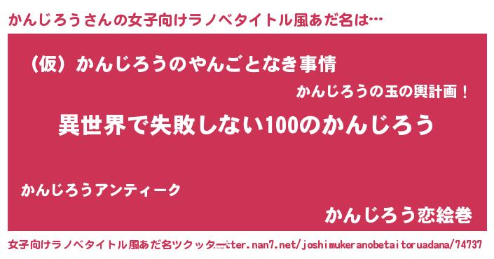 | 胡散臭い通販商品みたいなあだ名 | 『絶対に幸福をもたらす健康食品…その名も「かんじろう」』 |