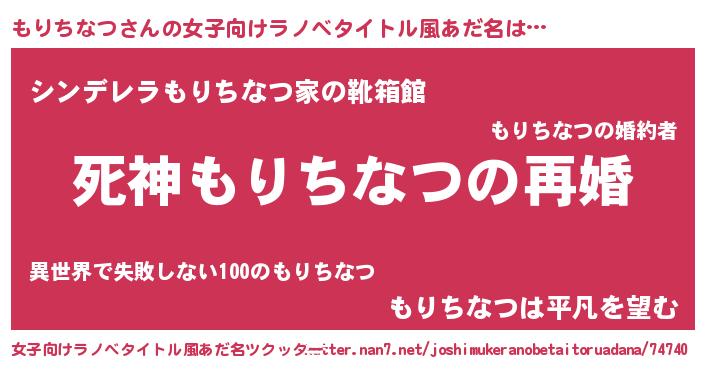 | 男性向けラノベタイトル風あだ名 | 『ノーゲーム・ノーモリチナツ』 |