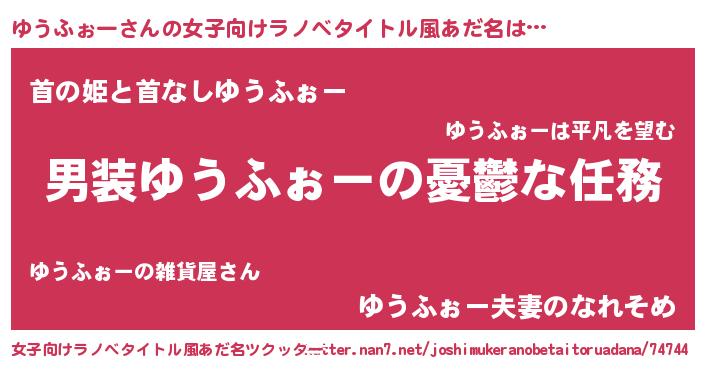 | ヒーロー風カッコイイあだ名 | 『慈愛の使者ゆうふぉー』『黄金騎士ユウ』 |