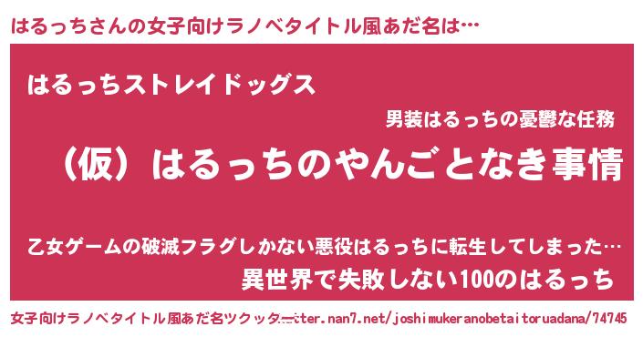 | 胡散臭い通販商品みたいなあだ名 | 『必ず成功するブレスレット…その名も「はるっち」』 |