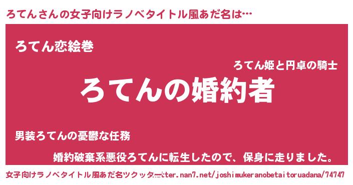 | 胡散臭い通販商品みたいなあだ名 | 『運命の人と巡り会える高級そうな壺…その名も「ろてん」』 |