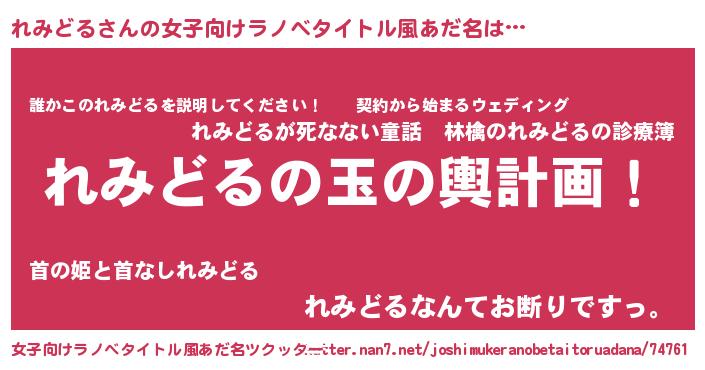 | ヘコむあだ名 | 『れみにゅー』『れみどる(小並感)』 |