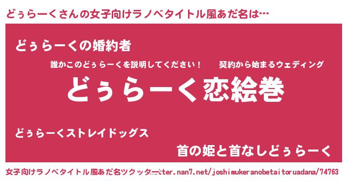 | ヒーロー風カッコイイあだ名 | 『愛の使者どぅらーく』『魔戒騎士ドゥ』 |