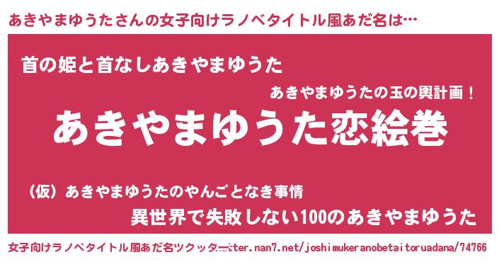 | 男性向けラノベタイトル風あだ名 | 『ノーゲーム・ノーアキヤマユウタ』 |