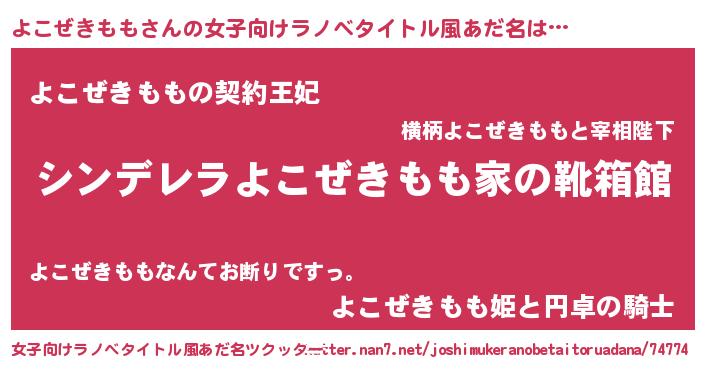 | 胡散臭い通販商品みたいなあだ名 | 『来世でも幸せになれる水素水…その名も「よこぜきもも」』 |