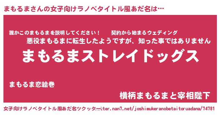 | 男性向けラノベタイトル風あだ名 | 『Re:まもるまから始める異世界生活』 |
