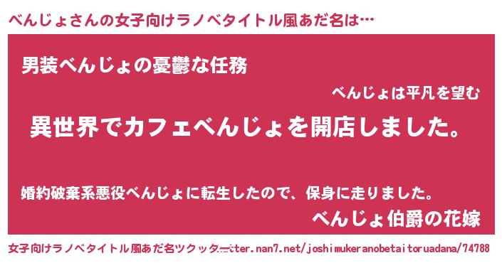 | 男性向けラノベタイトル風あだ名 | 『誰もが恐れるあのべんじょが、ぼくの専属メイドになるようです。』 |