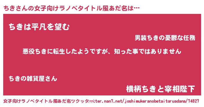 | 意味不明あだ名 | 『住所不定無職ちき(74歳)』『自称ちき』 |