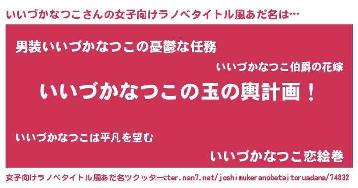 | 男性向けラノベタイトル風あだ名 | 『いいづかなつこ~年齢イコール彼女いない歴の魔法使い~』 |