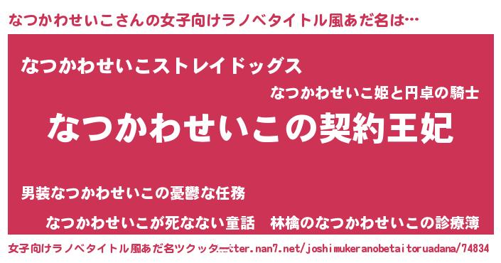 | 男性向けラノベタイトル風あだ名 | 『なつかわせいこという概念が存在しない退屈な世界 』 |
