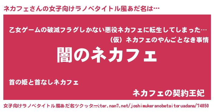 | ヘコむあだ名 | 『ネカフェ(苦笑)』『ネカふぇ~』 |