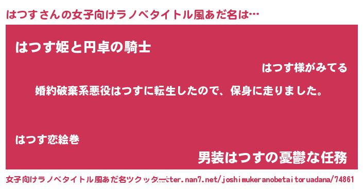 | 胡散臭い通販商品みたいなあだ名 | 『必ず成功する霊験あらたかなお札…その名も「はつす」』 |