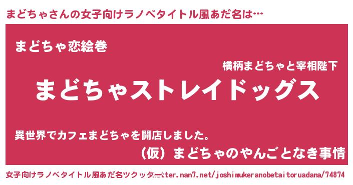 | 男性向けラノベタイトル風あだ名 | 『Re:まどちゃから始める異世界生活』 |