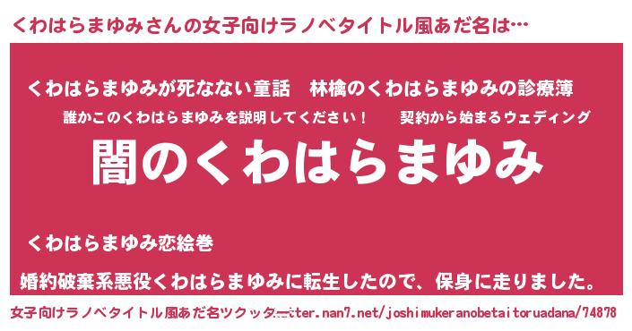 | 男性向けラノベタイトル風あだ名 | 『Re:くわはらまゆみから始める異世界生活』 |