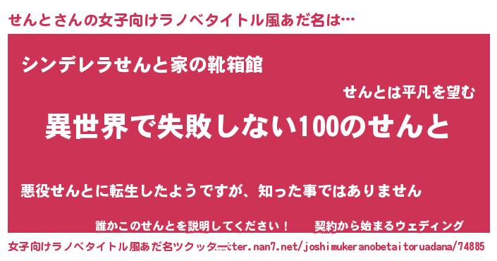 | 男性向けラノベタイトル風あだ名 | 『せんとという概念が存在しない退屈な世界 』 |