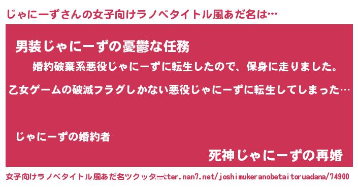 | ヒーロー風カッコイイあだ名 | 『仮面ジャダー』『慈愛の使者じゃにーず』 |