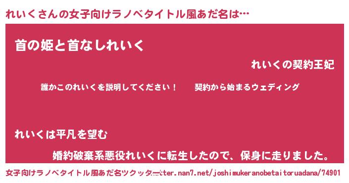 | 胡散臭い通販商品みたいなあだ名 | 『億万長者になれるブレスレット…その名も「れいく」』 |