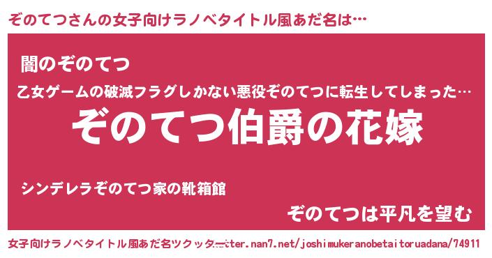| ファンタジー風あだ名 | 『エターナルゾノテツー』『ゼゾノトゥ』 |