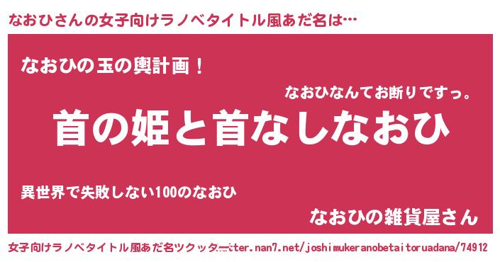 | 男性向けラノベタイトル風あだ名 | 『はたらくなおひさま!』 |