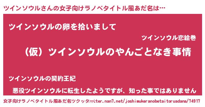 | 男性向けラノベタイトル風あだ名 | 『ツインソウルの憂鬱』 |