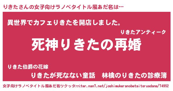 | ヒーロー風カッコイイあだ名 | 『慈愛の使者りきた』『ネオリキタ』 |