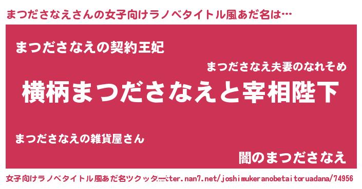 | 男性向けラノベタイトル風あだ名 | 『まつださなえに滅ぼされるだけの簡単なお仕事です』 |