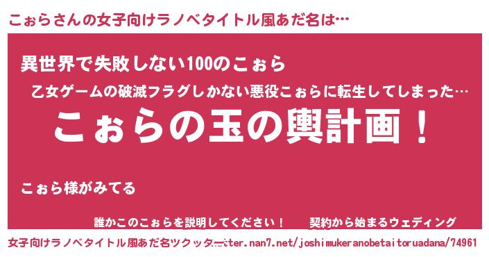 | ファンタジー風あだ名 | 『ユリコォヴァット』『コォディッシュ』 |