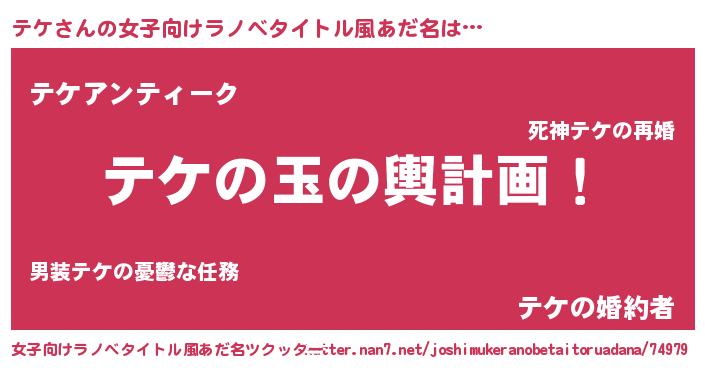 | 可愛いあだ名 | 『テケぷりん』『テケうちぇる』 |
