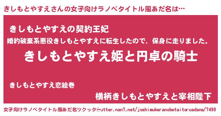 | 胡散臭い通販商品みたいなあだ名 | 『モテモテ間違いなし霊験あらたかなお札…その名も「きしもとやすえ」』 |