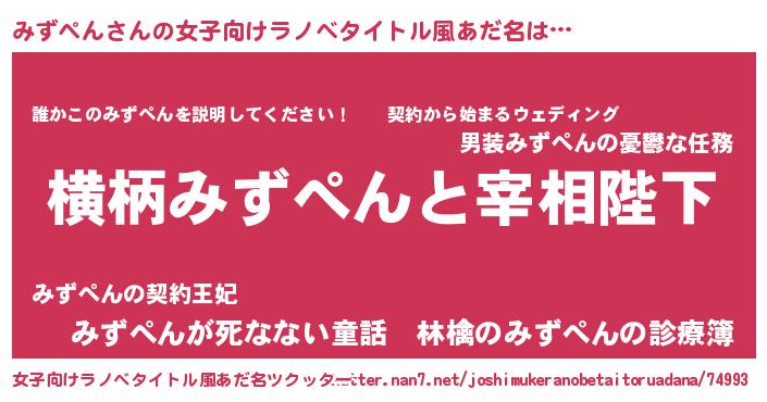 | 男性向けラノベタイトル風あだ名 | 『みずぺんに滅ぼされるだけの簡単なお仕事です』 |