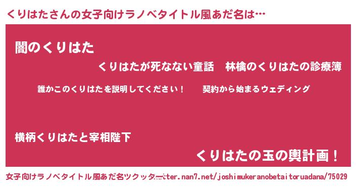 | 男性向けラノベタイトル風あだ名 | 『クリハタアートオンライン』 |