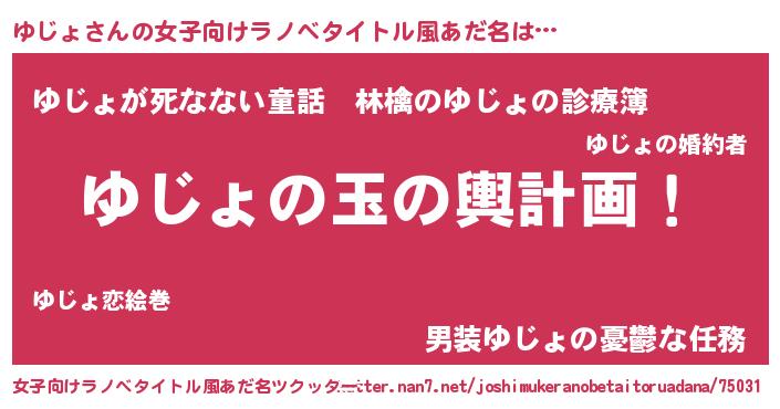 | 意味不明あだ名 | 『もやし科ゆじょ属』『永久保存ゆじょ』 |