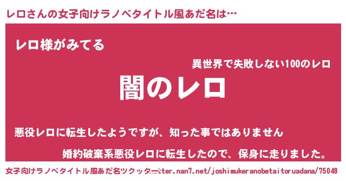 | 男性向けラノベタイトル風あだ名 | 『Re:レロから始める異世界生活』 |